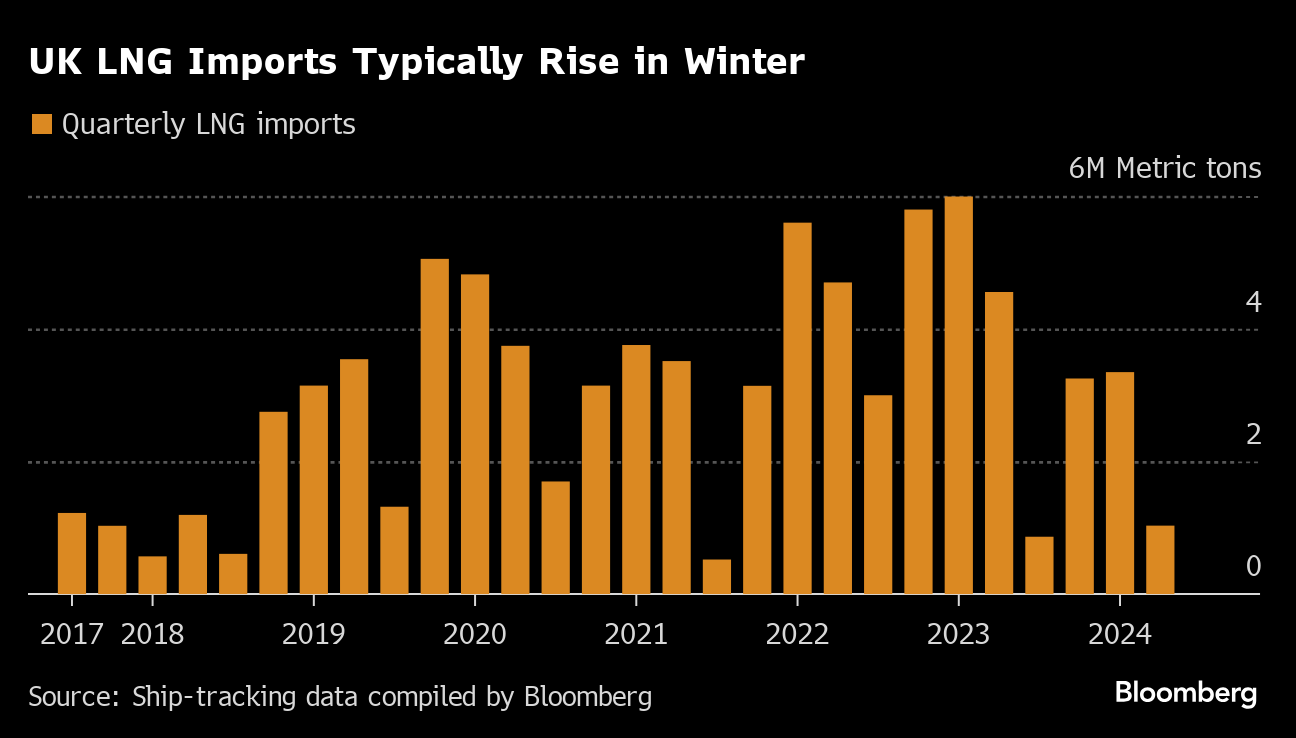 The UK increasingly depends on gas imports, including from the continent, as North Sea production declines, yet competition for the fuel may intensify as other nations try to fill the gaps left by reduced Russian supplies. The squeeze typically occurs during winter’s coldest days.