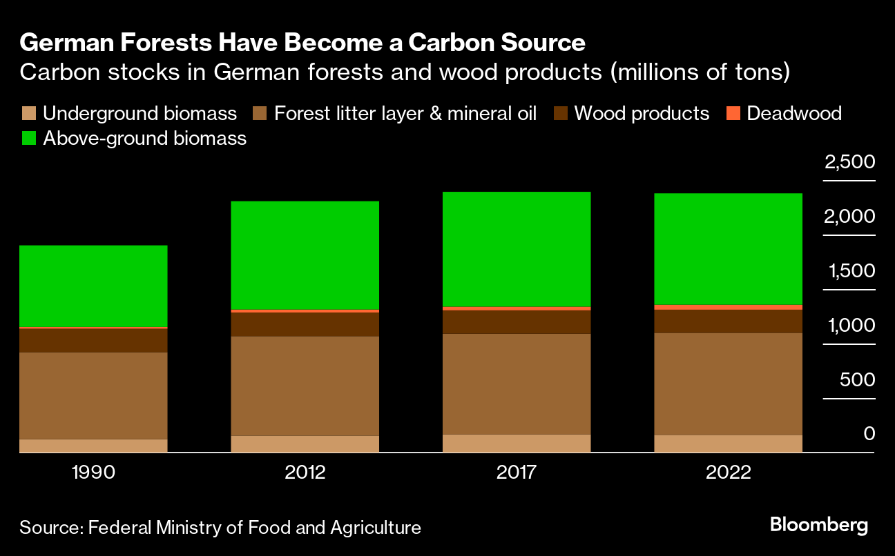(Bloomberg) -- For the first time in decades, German forests have become a source of carbon rather than a sink.