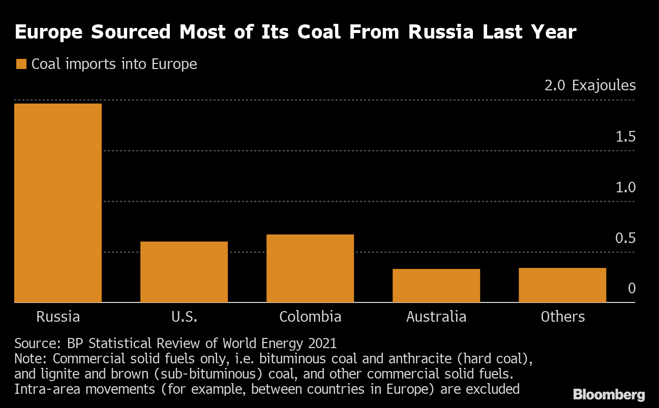“If all the European utilities switch to coal, it will result in a huge spike in coal demand that Russia alone cannot provide for on such a short notice,” said Natasha Tyrina, a principal research analyst at Wood Mackenzie Ltd. in Houston. “That would need supply from other countries as well, from the U.S. for example, but the situation there is similar to everywhere else.”
