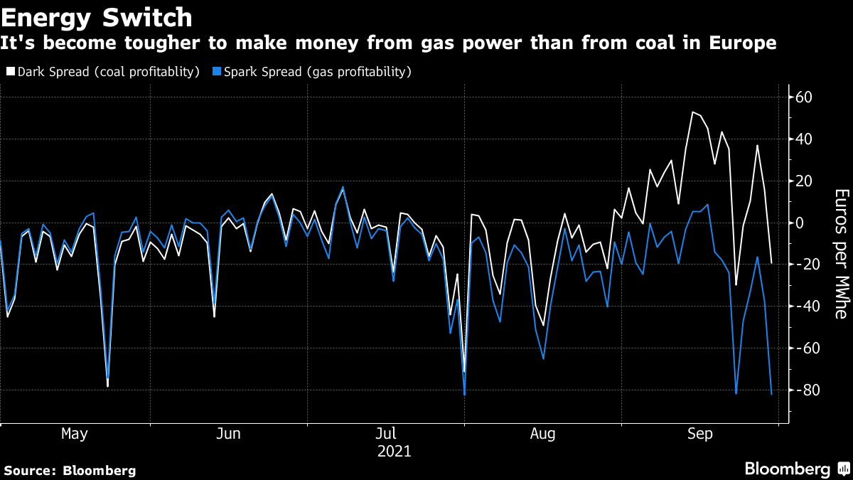 Europe’s plight highlights the energy supply crisis that’s gripping the world as countries emerge from the pandemic. Demand for oil, gas and electricity is surging, while coal is making a comeback, driven in part by China. The fuel’s resurgence, and countries’ recent dependence on it to keep their economies running, makes critical climate talks much more complicated with the COP26 meeting just weeks away.