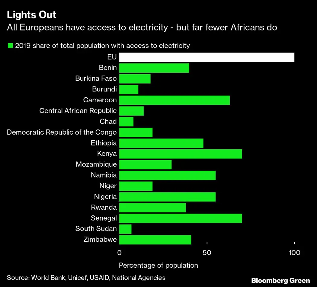 The pathway being pushed by European leaders — that Africa moves straight to clean energy sources — isn’t viable unless rich countries, private investors and development banks help with funding. There’s ample sunshine and wind in Sub-Saharan Africa, which collectively uses less energy than Spain, but little infrastructure to harness it. Developing countries also face much higher financing costs for green projects because they’re seen as riskier investments. Adding to Africa’s frustration is that rich nations have failed to deliver on a target to provide $100 billion a year in climate finance that was supposed to have been met in 2020.