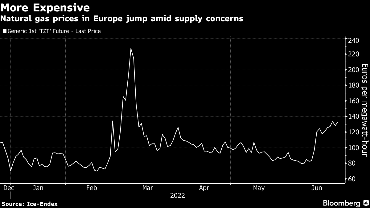 Buyers have found it more difficult to replace Russian gas from elsewhere after flows through a major route to the European Union were cut by 60% earlier this month. Germany is warning of rationing, while EU Energy Commissioner Kadri Simson said Monday there may not be enough supply worldwide to fully replace Russian flows.