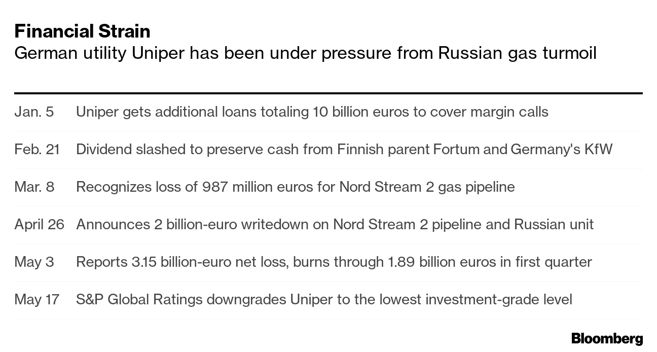 “Uniper is facing real problems right now,” said Patricio Alvarez, a Bloomberg Intelligence analyst. “It is too exposed to the threat of Russia turning off the taps.”