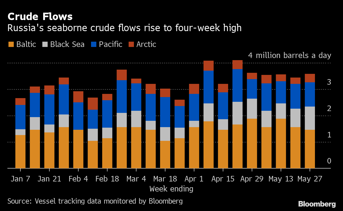 Russia’s Seaborne Crude Flows Rise as EU Tussles Over Ban (5:05 p.m.)