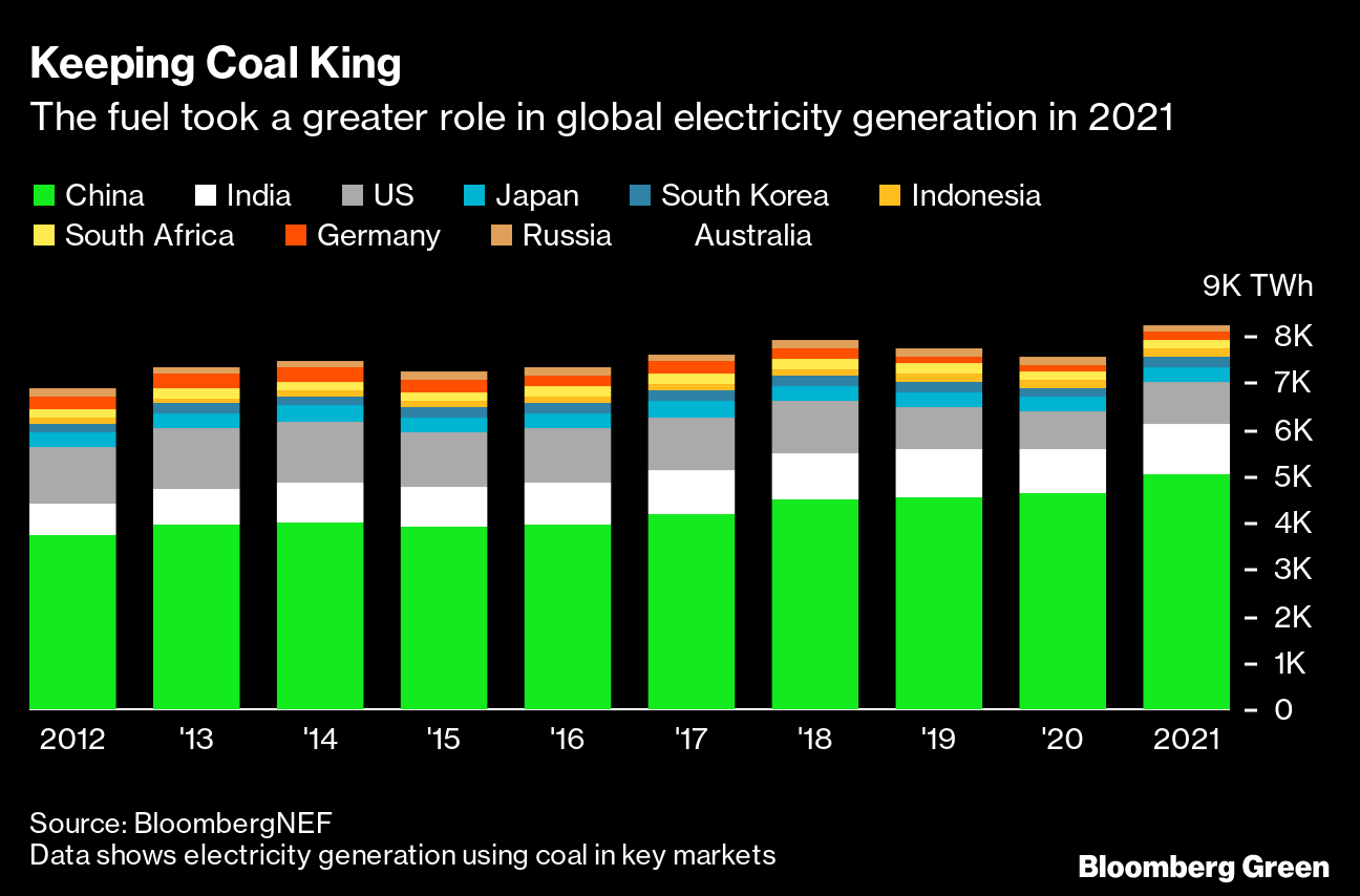 Last year was supposed to be the beginning of the end for the dirty fuel. Consumption had declined in both 2019 and 2020. Alok Sharma, president of the United Nations-led COP26 climate conference, spent the year urging world leaders to “consign coal to history” when they met in Glasgow in November.