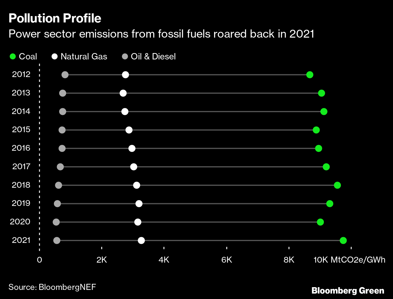 The result is that even as investments in wind and solar generation jump to records, it’s very possible that emissions from the power sector rise to a new high this year, according to Ember. UN climate scientists have warned that they have to be cut in half by 2030 to be on path to limit rising temperatures to about 1.5 Celsius above pre-industrial times. Emissions from US power plants will increase 1.5% in 2022, according to the Energy Information Administration.