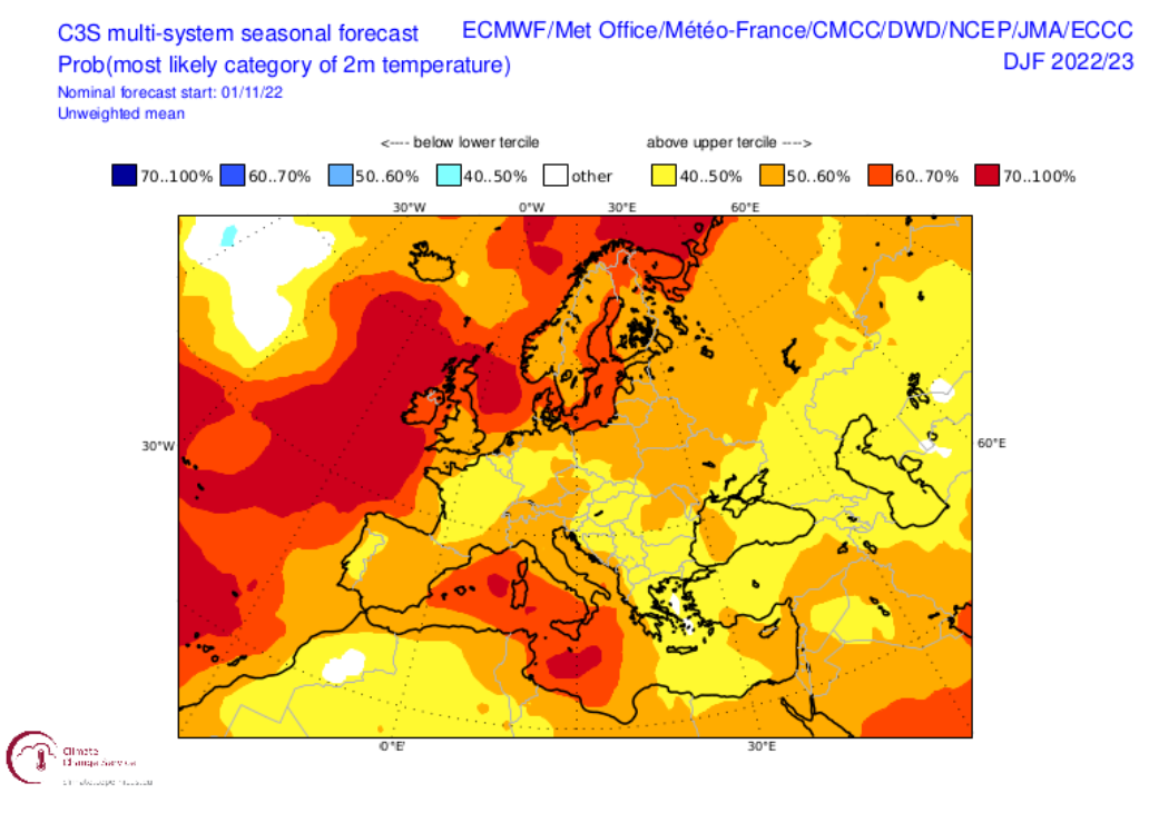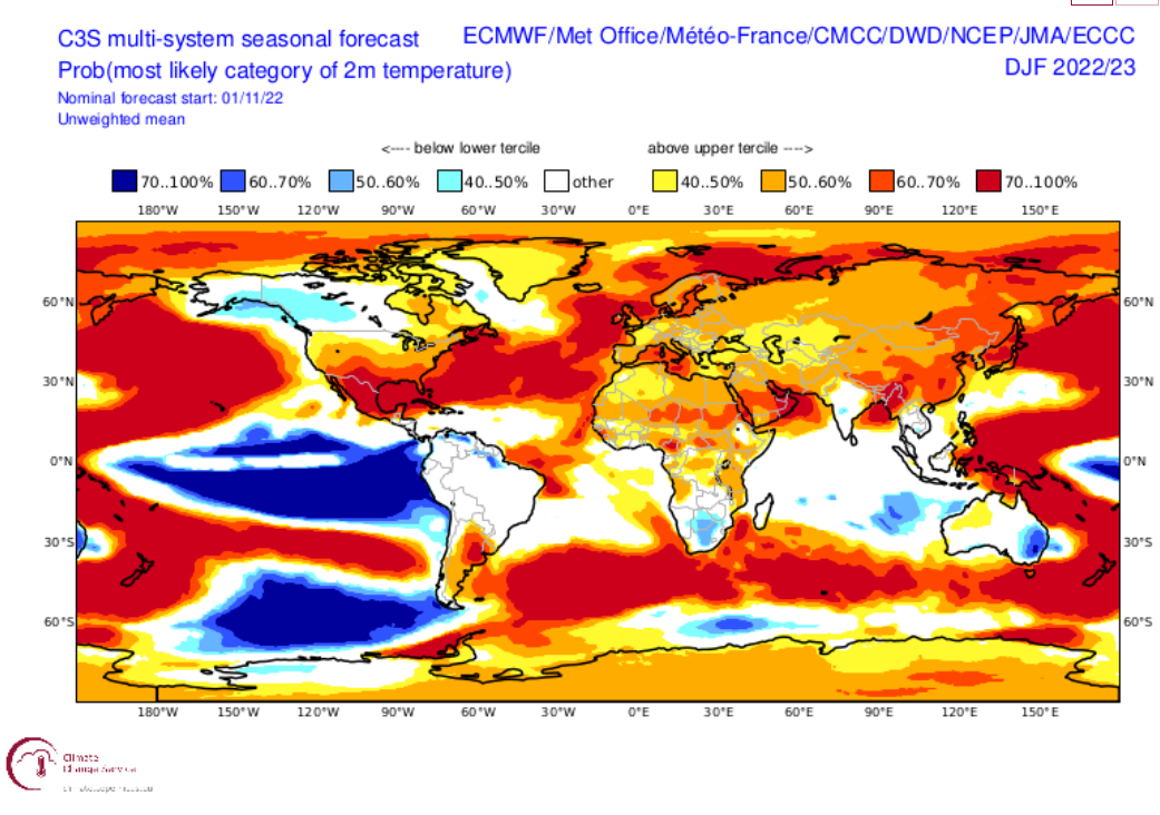 Globally, Copernicus reported with 60% to 70% certainty energy markets across the central and southern US as well as much of China, Japan and Russia will have winter temperatures well above normal -- a signal that long-term global warming trends are impacting economies.