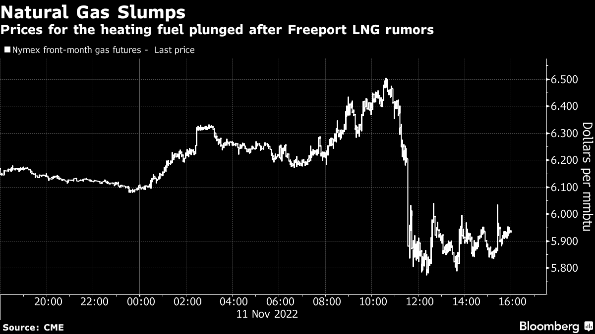 (Bloomberg) -- Freeport LNG said a tweet about cracks in pipes at its Texas export terminal, which led to US natural gas futures plummeting Friday, contained false information, as did a letter stating the terminal would restart soon.