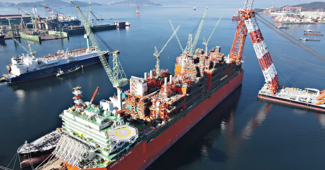 Coral Sul FLNG has a gas liquefaction capacity of 3.4 million tons per year and will produce LNG from the 450 billion cubic meters of gas of the Coral reservoir.