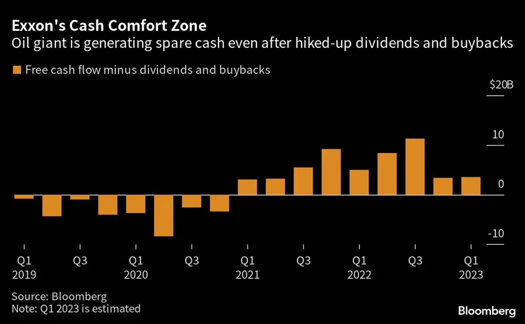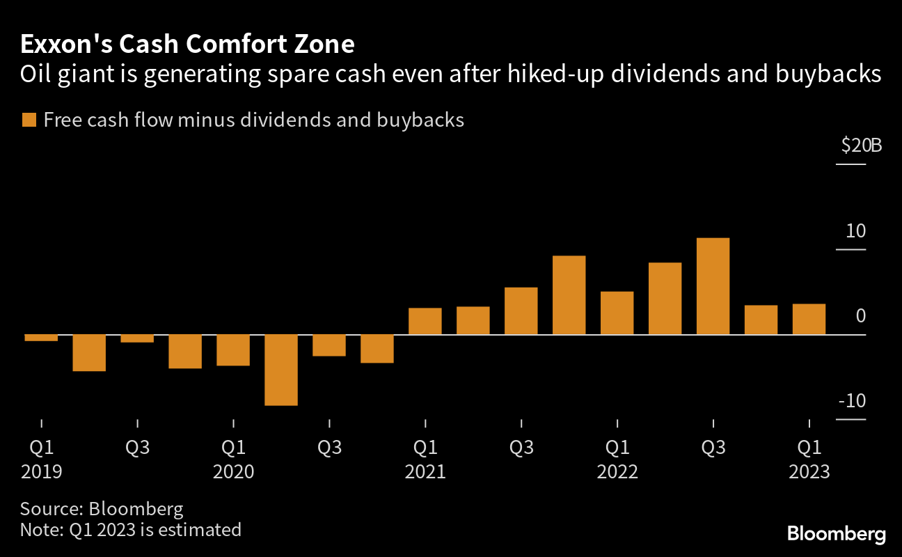 The unexpected results were “really all about us increasing our production volumes significantly,” Chief Financial Officer Kathy Mikells said during an interview. Exxon’s output off the coast of Guyana and in the US Permian Basin rose 40% on a combined basis from a year earlier, she noted.