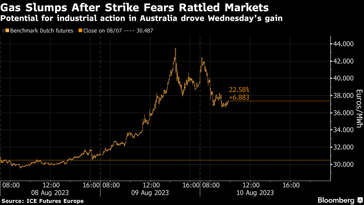 Potential strikes at three major LNG facilities in Australia could disrupt about 10% of global exports of the fuel. If industrial action goes ahead, it could make Asian buyers seek alternative supplies from outside the region, intensifying competition with Europe for the fuel.