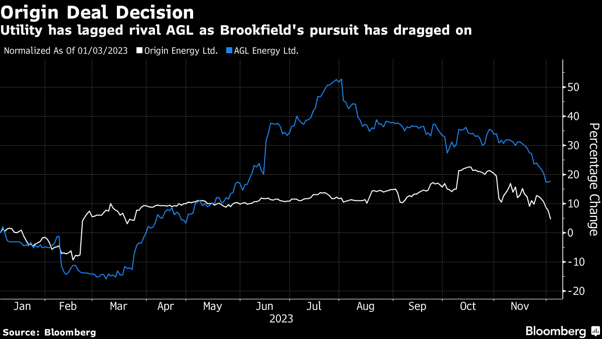(Bloomberg) -- Origin Energy Ltd. rejected a A$19.1 billion ($12.8 billion) Brookfield Asset Management Ltd.-led takeover, after the fund’s yearlong pursuit of a utility that’s vital to Australia’s energy transition.