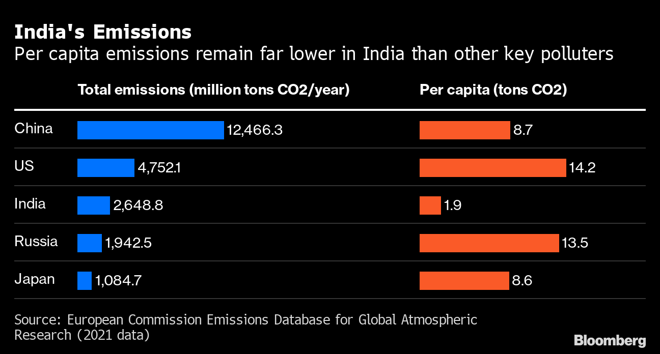 India has faced criticism over the slow pace of its climate action. While 350 billion rupees was allocated in a federal budget last week for energy transition projects, the cost of hitting Modi’s net-zero target could top $10 trillion, the Council on Energy, Environment and Water calculated in a report last year.