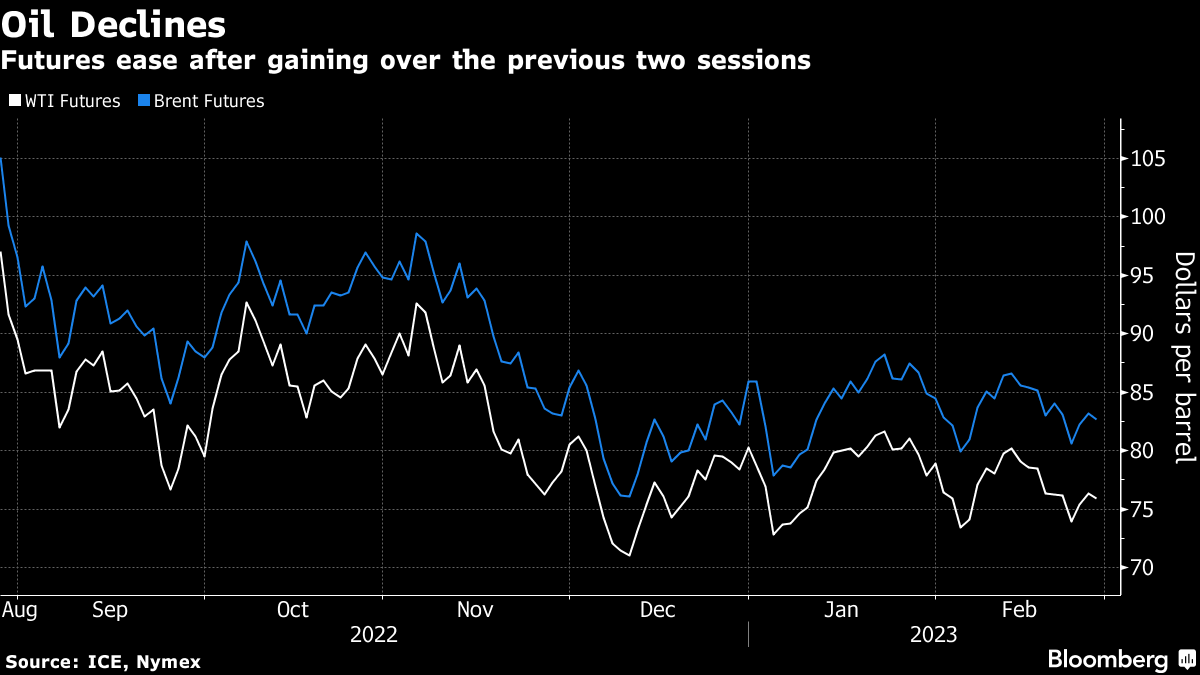 West Texas Intermediate held above $76 a barrel, after earlier dropping as much as 1%. Poland’s largest oil company, PKN Orlen SA, unexpectedly stopped receiving crude via the Druzhba pipeline from Russia. Still, traders remain anxious that still-elevated US inflation will compel the Fed to go on raising rates. That may aid the dollar, trigger a US recession, and hurt commodities.