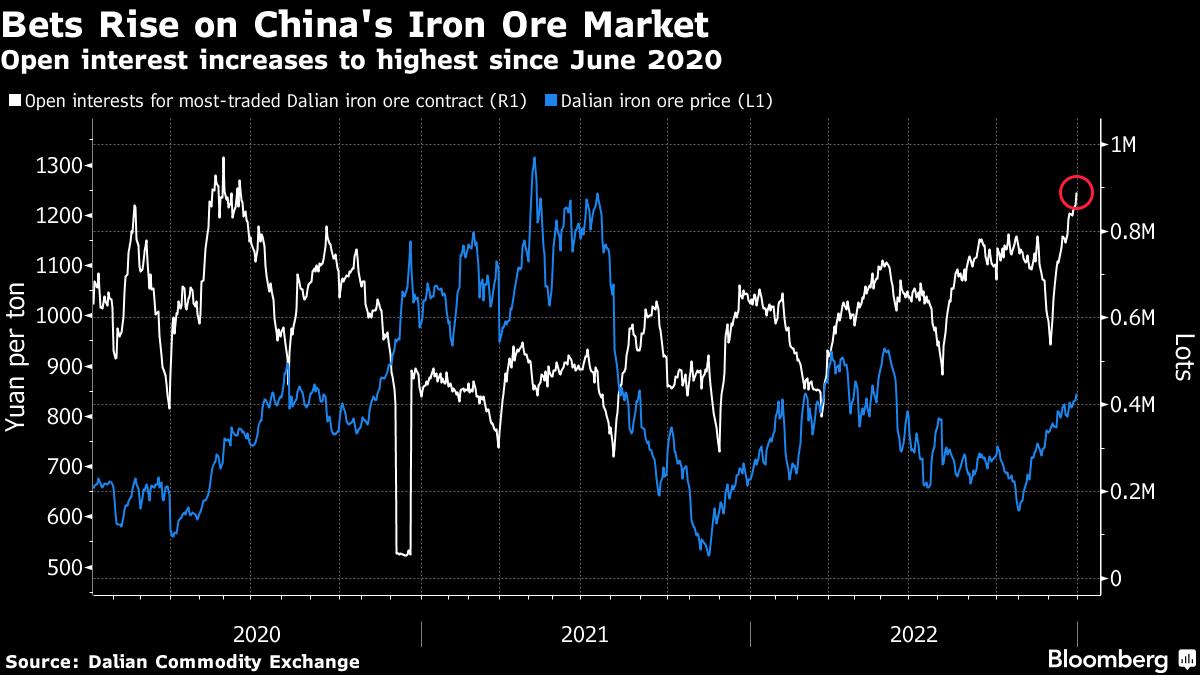 The recovery optimism was the major driver of a 17% jump last month in iron ore futures. In the domestic market, investors betting on a recovery in construction activity pushed open interest in contracts for the steel-making ingredient to the highest since June 2020 on the Dalian Commodity Exchange.
