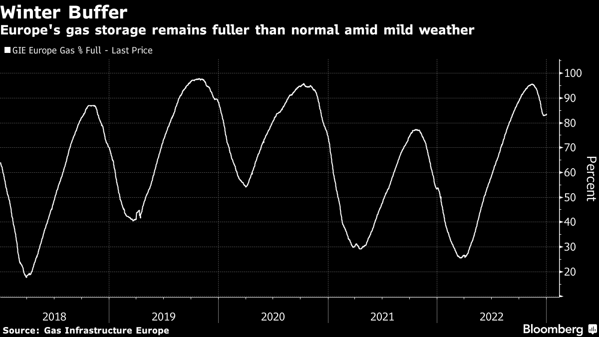 It’s a sharp turnaround from the freezing temperatures of early December that had raised concerns over natural gas reserves depleting too quickly. Governments and consumers spent much of the summer worried they would face blackouts after Russia’s sharp gas supply cuts following the war in Ukraine.