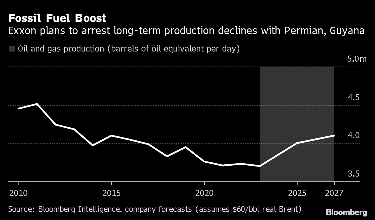 The Texas oil giant has continued to invest in major projects in Guyana and the Permian region during the pandemic, which by Exxon’s own estimates should have the knock-on effect of driving production to the equivalent of more than 4 million barrels a day by 2027, up about 8% from current levels.
