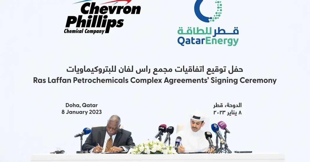 The announcement was made in Doha in a special ceremony during which His Excellency Saad Sherida Al-Kaabi, the Minister of State for Energy Affairs and the President and CEO of QatarEnergy, and Bruce Chinn, the President and CEO of Chevron Phillips Chemical, signed the agreement for a joint venture company to implement the project.