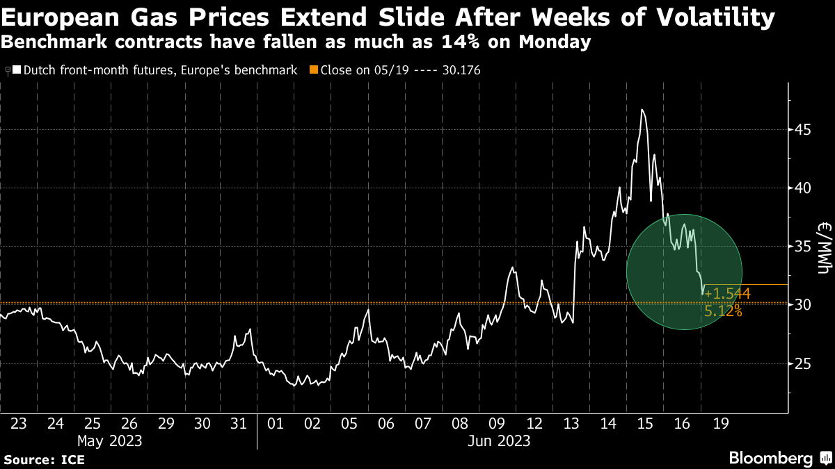Europe Gas Prices Extend Fall After Weeks of Intense Volatility