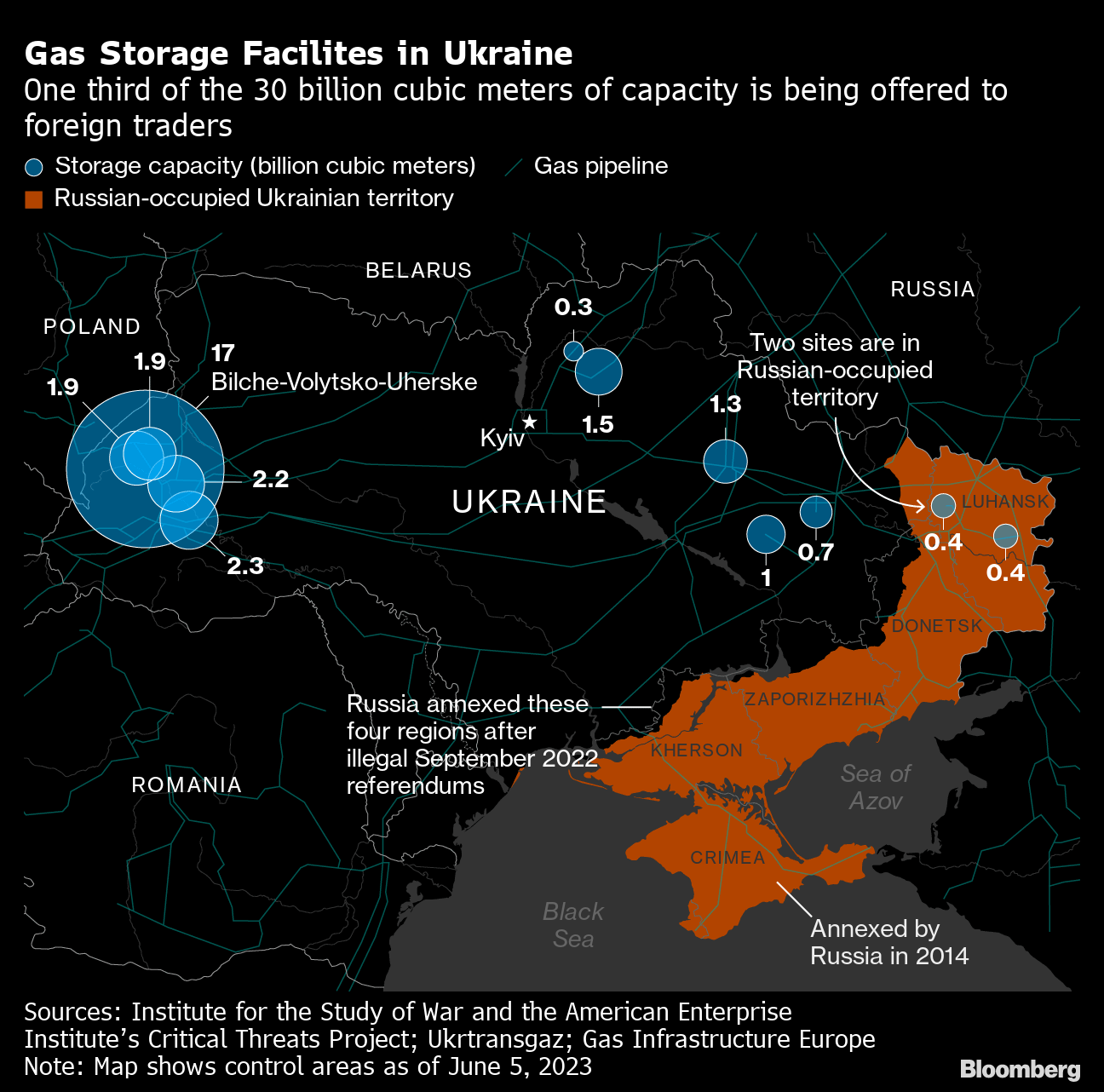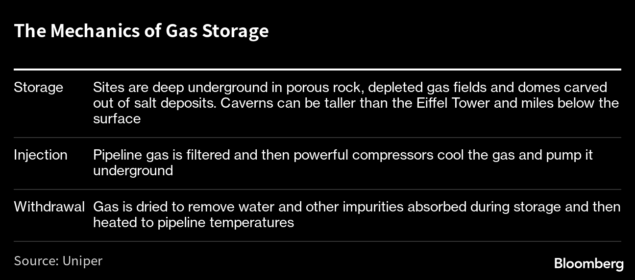 European officials are now contemplating whether to support links to Bilche-Volytsko-Uherske and other facilities scattered across Ukraine — home to the continent’s biggest network of underground caverns that can hold gas for when demand and prices spike in the winter. With EU sites already edging close to capacity — currently more than 70% full — storing the fuel in Ukraine could prevent a glut in the coming months.