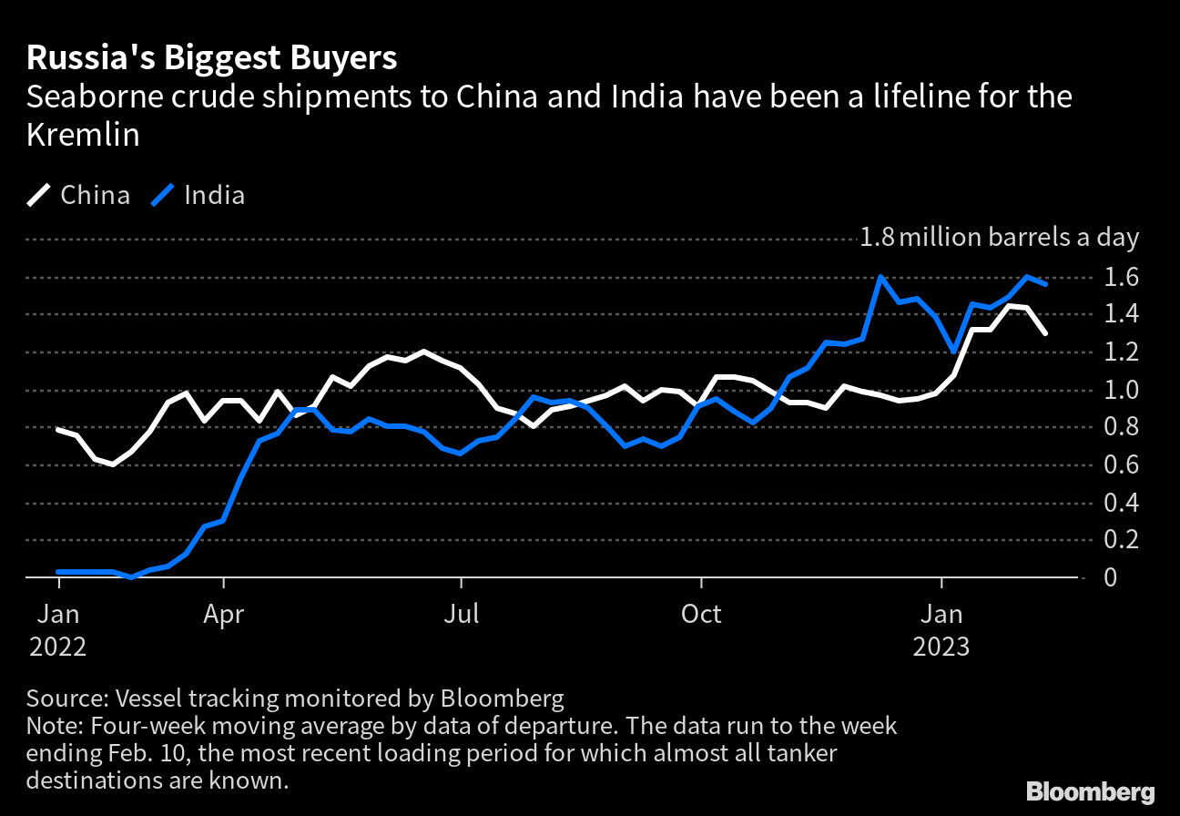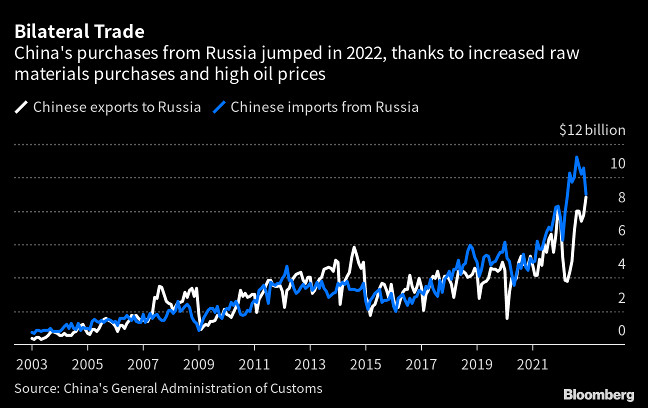 Since the invasion of Ukraine, the world’s largest oil importer has already been a crucial source of support for Russia, cut off from Western markets and grappling with an unprecedented array of sanctions. Partly thanks to high oil and gas prices, bilateral trade hit a record in 2022.