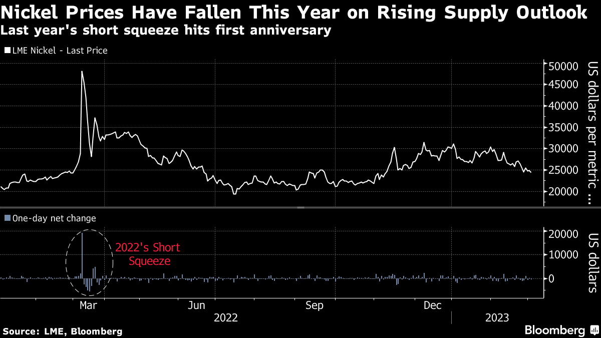 The UK markets watchdog initiated a probe into the London Metal Exchange for potential misconduct during a massive nickel short squeeze last year. Also, the LME nickel market is still dogged by illiquid and erratic trading.