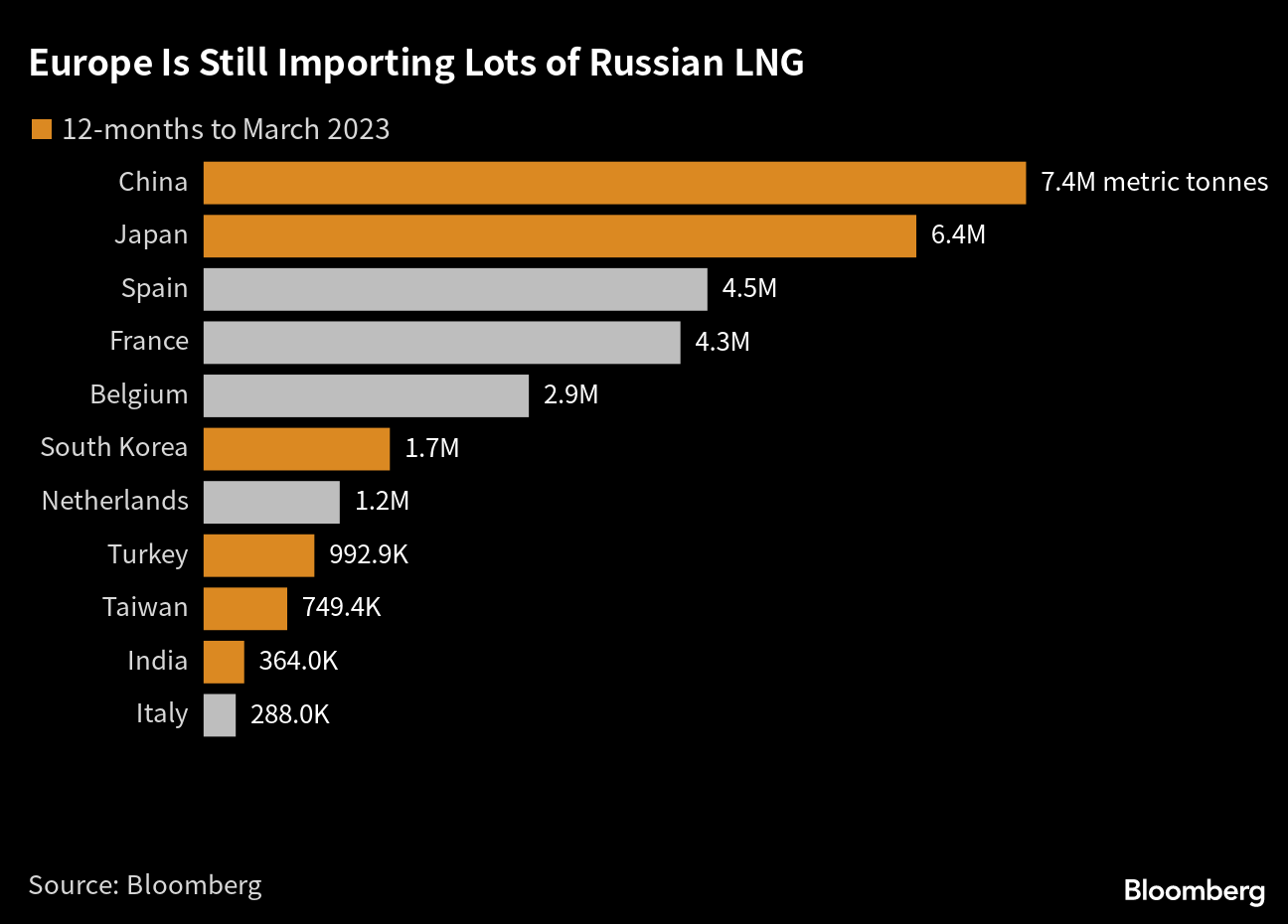 The Dutch government is working on ending all LNG imports from Russia, while Spain, the biggest European buyer of LNG from the country, started urging importers not to sign new contracts.