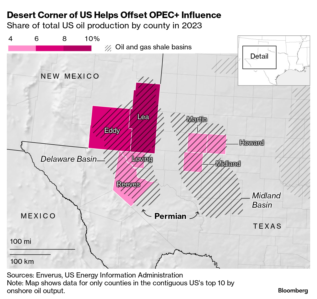 When the adoption of hydraulic fracturing, or fracking, about 15 years ago made tight deposits of oil and gas readily accessible across the US, drillers swarmed to the US’s most prolific basin, the Permian. Straddling parts of Texas and New Mexico, the oil-rich area was generally seen as the US’s best tool to help offset the dominance of Organization of the Petroleum Exporting Countries and its allies, which try to control global oil prices by coordinating crude output.