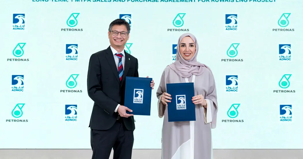 ADNOC has signed a second Sales and Purchase Agreement (SPA) for the lower-carbon Ruwais liquified natural gas (LNG) project, with Malaysia’s PETRONAS. The 15-year SPA for supplying 1 million tonnes per annum (mtpa) of LNG converts a previous Heads of Agreement between ADNOC and PETRONAS into a definitive agreement, the company said in a statement.