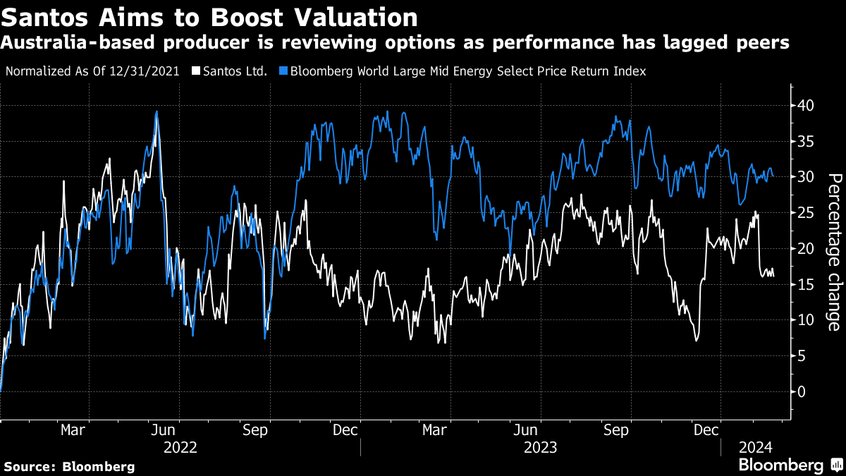 Santos had flagged in November it was working with advisers on potential changes to strategy after seeing its market valuation lag behind peers.