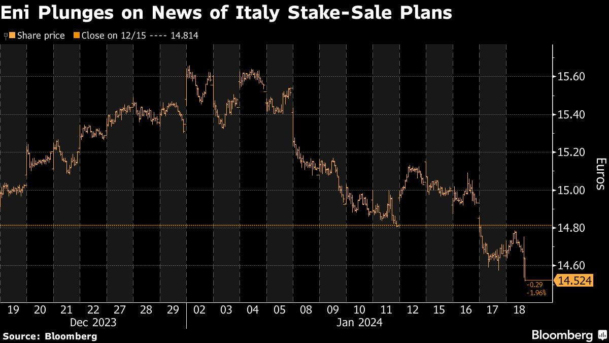 Italy Plans to Sell €2 Billion Eni Stake to Reduce Debt