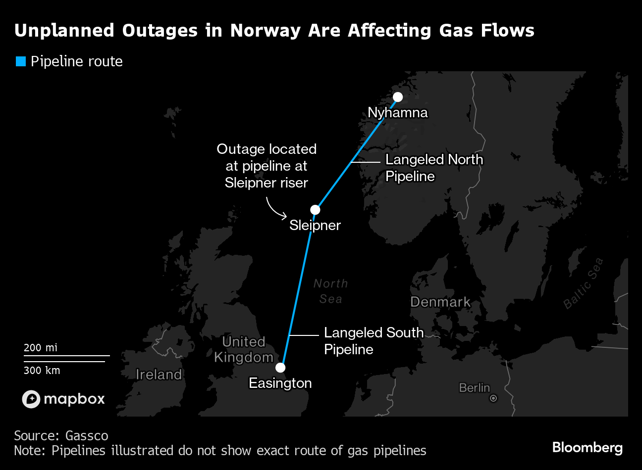 (Bloomberg) -- Urgent repairs to a pipe on a gas platform in Norway are underway but the event served as a grim reminder that small outages can send European prices soaring.