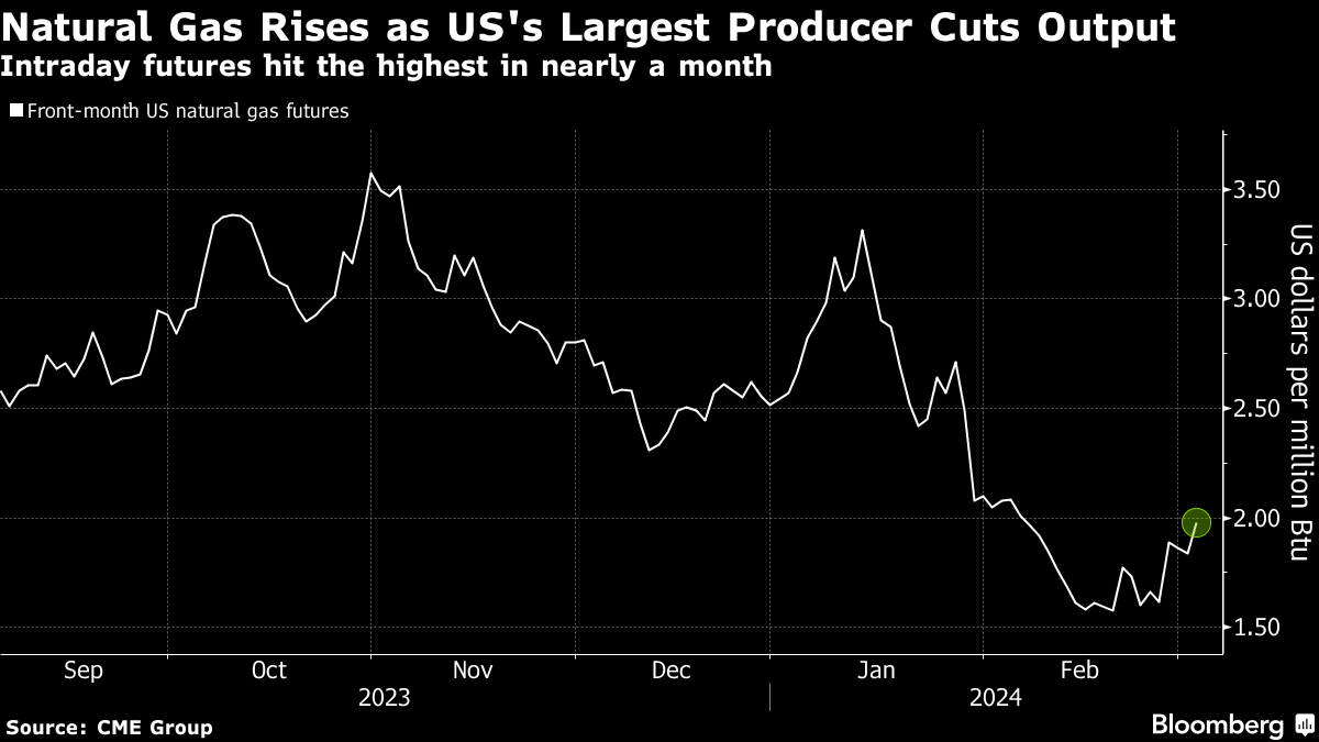 The company’s move is the latest sign that prices aren’t sustainable at current levels. US gas futures have touched pandemic-era lows in recent months, with a mild winter curbing demand amid soaring production from shale drillers. Now companies are having to adjust. Last month, Chesapeake Energy Corp. and Comstock Resources Inc. both announced they would reduce output.