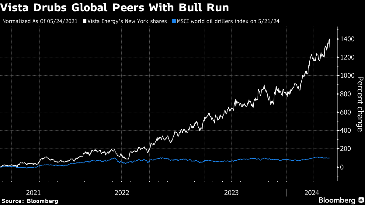 “Vista was able to show great economics in their shale areas and continually out-deliver guidance, justifying the share rally, despite rich trading multiples,” said Oriana Covault, a research analyst at Balanz Capital in Buenos Aires.