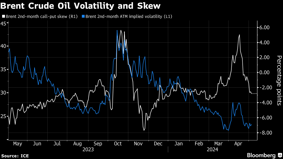 With Israel and Iran stepping back from direct conflict, volatility has dropped back to multiyear lows and the skew has flipped back to favoring puts, as focus returns to the usual suspects: interest rates, OPEC+ supply and global demand growth.