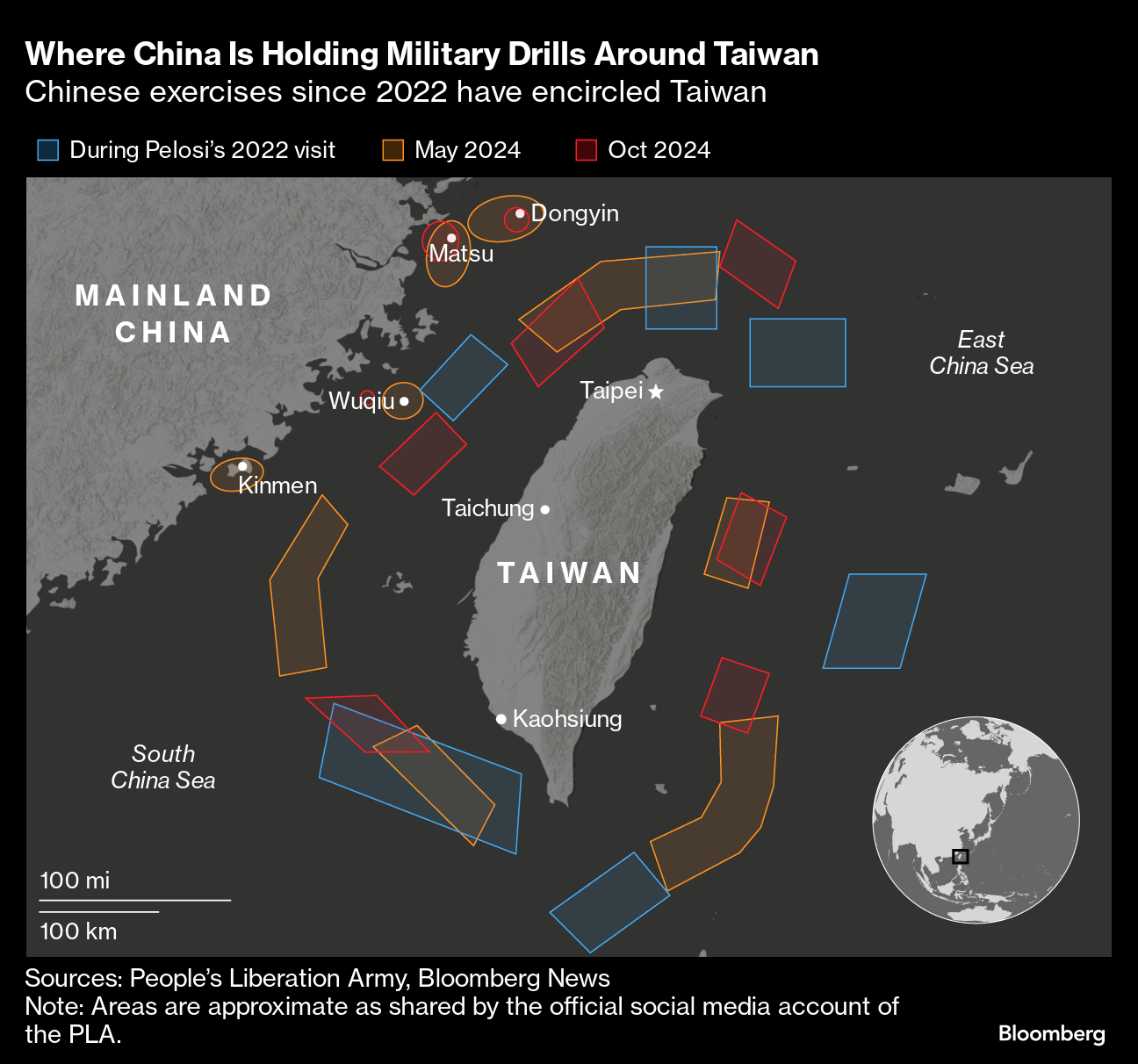 (Bloomberg) -- Taiwan’s imports of liquefied natural gas could be vulnerable if China someday imposed a blockade, the archipelago’s defense chief said — highlighting the concern Beijing’s military activity is raising in Taipei.