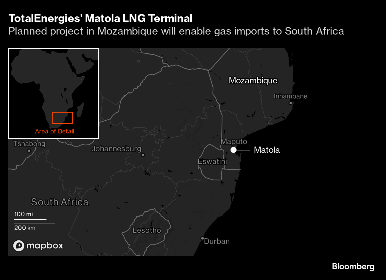 The Matola project next to Mozambique’s capital of Maputo will have the capacity to bring in 2.5 million tons of LNG annually, TotalEnergies said Monday in a response to emailed questions. It may be the first major supplier of the super-chilled fuel to South Africa and is separate from an export plan that the French major has in Mozambique’s northeastern Cabo Delgado province.