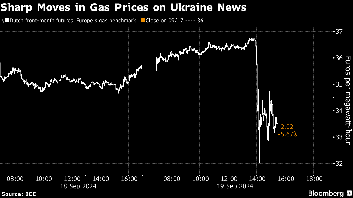 Gas prices fell as much as 9.1% after an earlier media report about a possible deal. Talks are still continuing on keeping gas flowing through Ukraine to Europe once a pact with Russia expires at the end of the year, the people said.