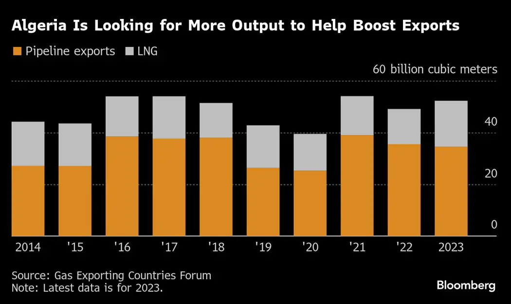 The country has three pipeline connections to Europe, giving it an advantage over more distant suppliers such as Qatar that send liquefied natural gas via ships. Algeria wants to replicate the success American companies have had with shale at home, which turned the US from a net importer to one of the world’s biggest exporters.