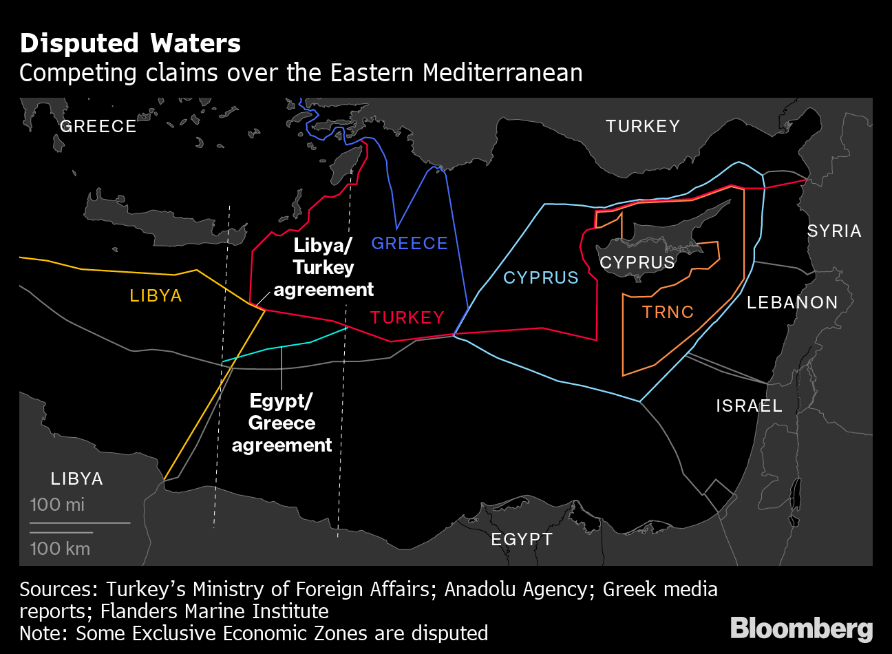 If approved, the agreement could kickstart oil and gas exploration by Turkish ships in a swathe of territory between Crete and Turkey, reinforcing Ankara’s claims in the eastern Mediterranean. That risks inflaming a dispute with Greece and Cyprus, which accuse Turkey of a bid for dominance in contested waters.