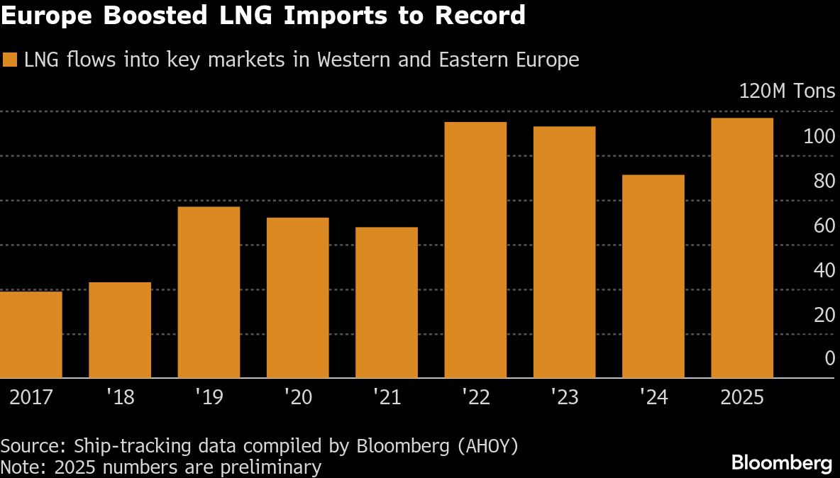 The shift reflects how Europe’s energy safety net has evolved since the crisis triggered by Russia’s full-scale invasion of Ukraine. Pipeline flows that once anchored the market gave way to an intense focus on building up stockpiles, but this year attention has increasingly turned to seaborne supplies. Europe’s liquefied natural gas imports are expected to have hit a record in 2025, according to the International Energy Agency.
