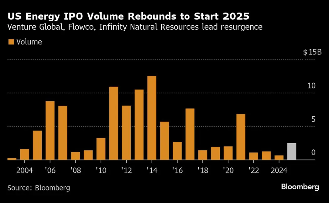 (Bloomberg) -- After a burst of oil and gas M&A deals, demand for new investment targets and buoyant natural-gas prices are helping drive a rebound in IPO activity in the energy industry to start 2025.