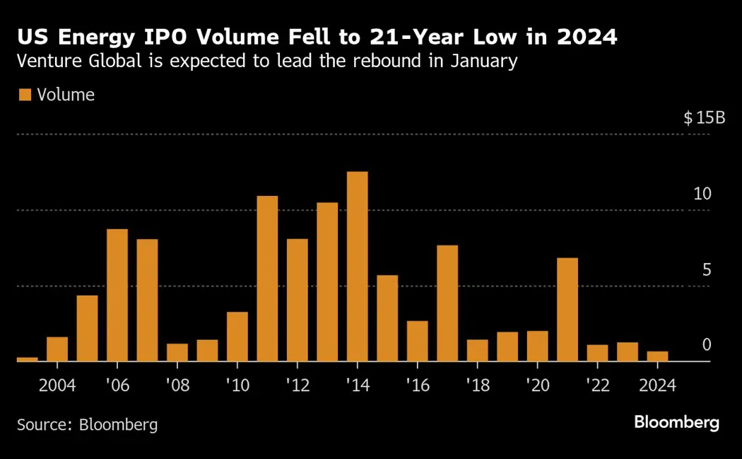 Venture Global sold 70 million shares on Thursday for $25 each, in the middle of a reduced range, to raise $1.75 billion. The US’s biggest energy-sector first-time share sale since 2021 has reversed a drought that saw just six energy IPOs in the US raising $667 million last year — the lowest volume in more than two decades, data compiled by Bloomberg show.