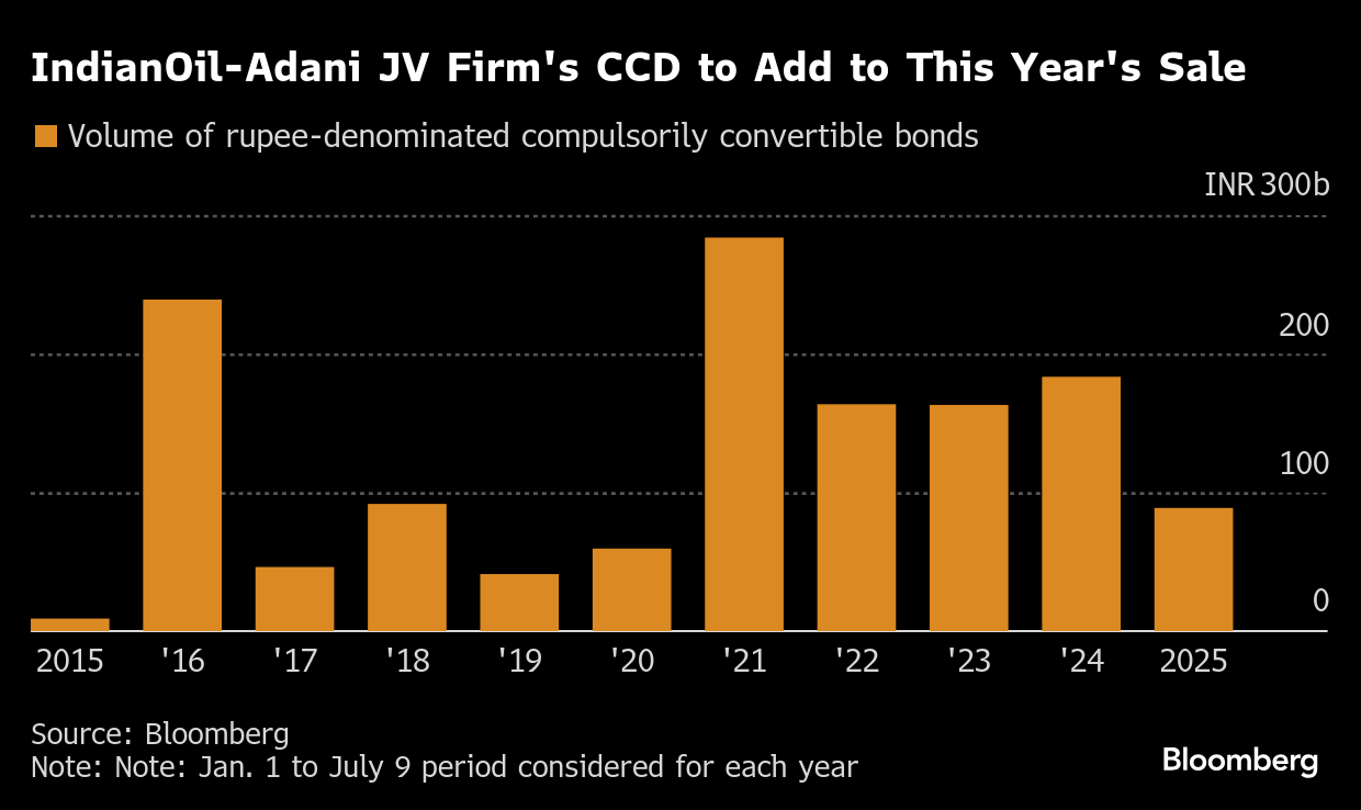 The company, a joint venture between state-run Indian Oil Corp. and Adani Total Gas Ltd. of billionaire Gautam Adani, plans to raise the money in four tranches via compulsorily convertible debentures that will be converted into equity on a specified date, one of the people said, asking not to be identified as the details are private.