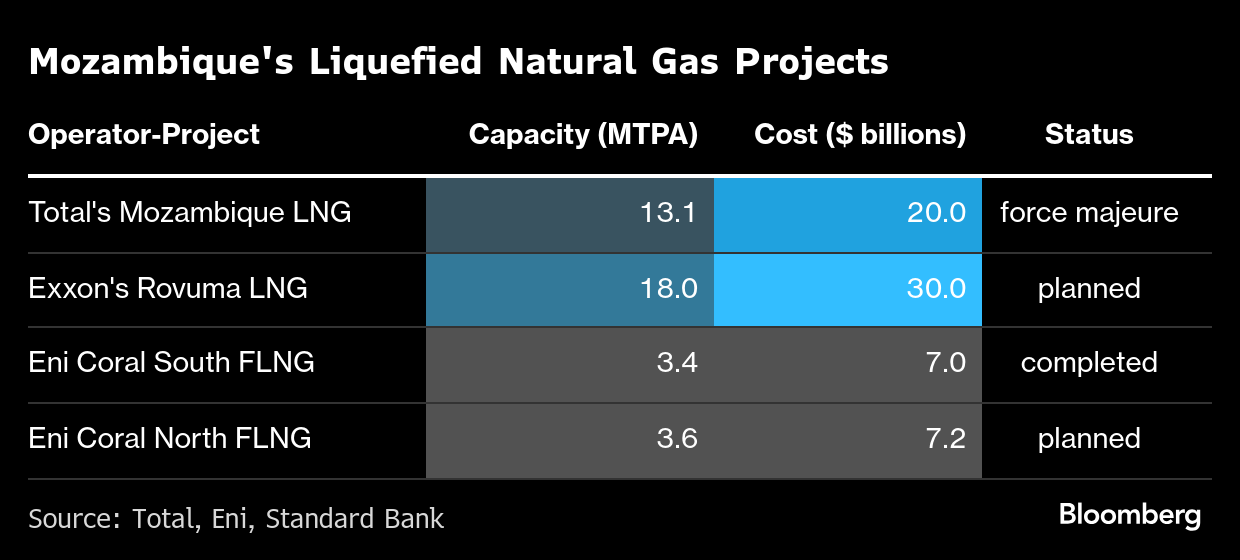 (Bloomberg) -- Four years after terrorist attacks halted a massive liquefied natural gas project in Mozambique, momentum behind $57 billion in facilities that will export the fuel is picking up.