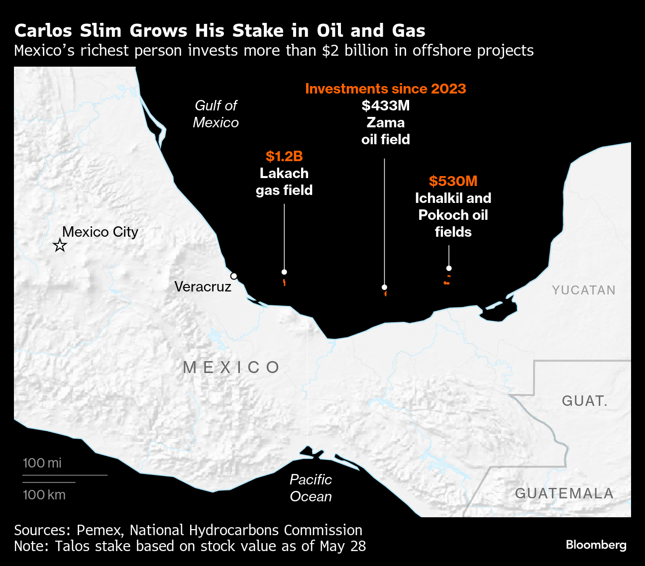 For Talos, Slim’s involvement offered a level of protection for the investment that had become more precarious under Mexico’s nationalist government, according to a person with direct knowledge of the situation who requested anonymity because the discussions were private. While the magnate stepping in didn’t result in a fast-tracked process, it did offer assurances the project wouldn’t languish in regulatory limbo, the person said.