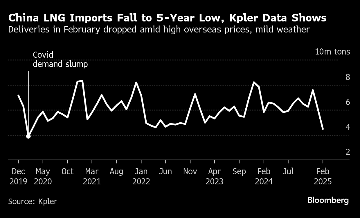 China LNG Imports Fall to Lowest Since Covid Hit Demand in 2020