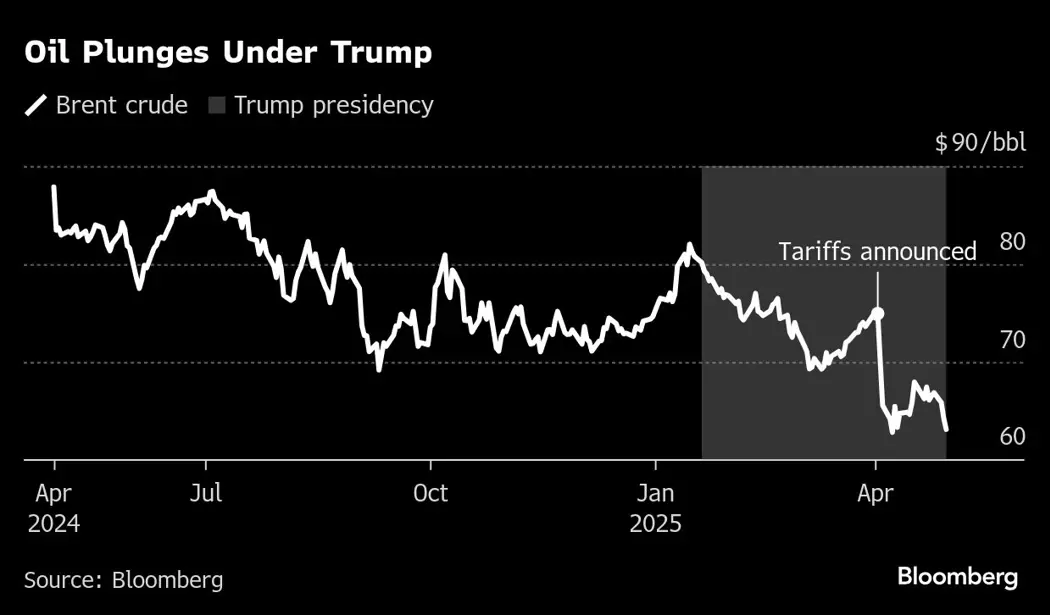 Big Oil is finding it increasingly difficult to maintain share buybacks as Brent crude slumped 17% this year to about $62 a barrel at the close Thursday. Trump’s tariffs are poised to slow demand growth for crude and increase the cost of steel and other materials needed to produce oil and gas. At the same time, OPEC and its allies surprised markets last month with a plan to increase oil supplies more than expected later this year.