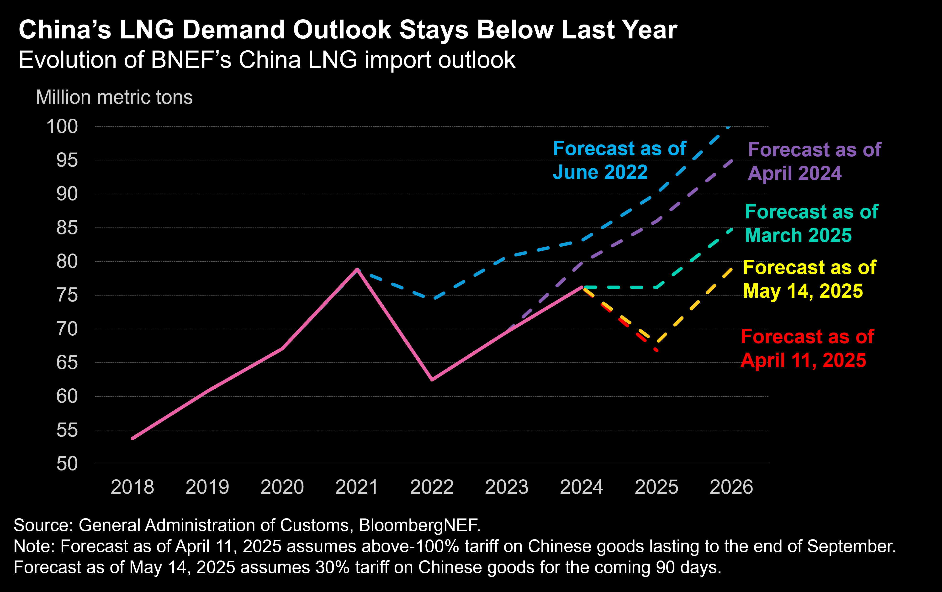 BloombergNEF expects China’s LNG imports in 2025 at 68 million tons, an 11% drop from last year. But there’s an expectation that expanded supply and cheaper prices will rekindle demand, Samantha Dart, co-head of global commodities research at Goldman Sachs Group Inc., told Bloomberg Television on Wednesday.