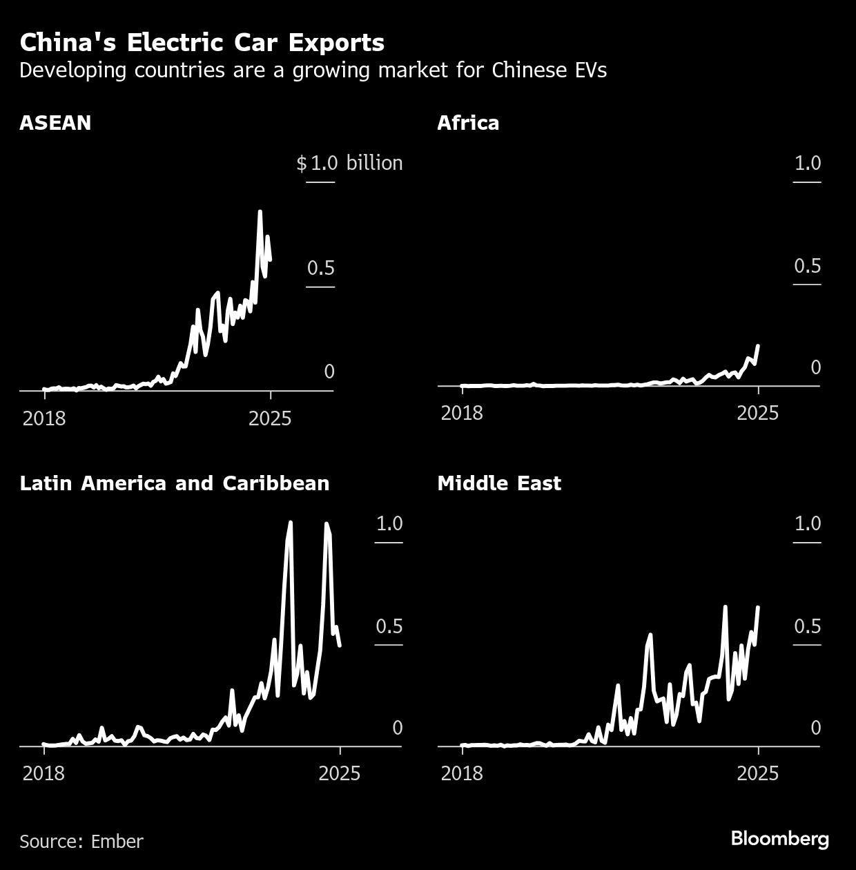 Crucially, China’s exports in emerging markets are growing rapidly. This year, more than half of China’s electric car exports have come from outside the Organization for Economic Cooperation and Development, a rich-country club.